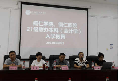 9月7日下午,我院彭虹主任、张云老师、赵红雷老师一行人去往铜仁职业技术学院就会计学(专升本)班参与2023级会计学(专升本)新生入学教育会议。职业技术学院经济管理学院刘国华书记、吴玉院长、谭嘉黎科长、刘凤林老师等参加了会议。彭虹主任对新生表达了欢迎,明确两个学院在学生培养中的合作关系,隆重介绍了本院派与职院两个专升本的两位辅导员。并由张云老师对学校教学管理办法、人才培养制度等内容进行了讲解,让学生充分了解本科学习需要完成的任务。