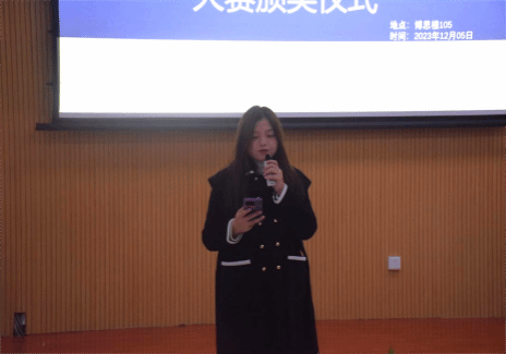 随后,主持人宣布获奖名单,由嘉宾及老师为获奖人员颁发证书和奖品。并由获奖团队代表分享获奖感言,分享其比赛的心路历程以及参赛收获,倡导同学们积极挑战自我。