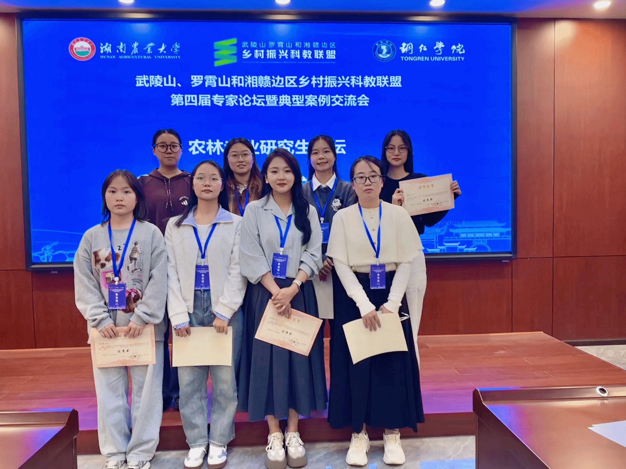2025年10月18日,由武陵山、罗霄山和湘赣边区乡村振兴科教联盟、湖南农业大学主办,beat365官网承办的武陵山、罗霄山和湘赣边区乡村振兴科教联盟第四届专家论坛暨典型案例交流会在贵州铜仁举办。我院农业(农村发展)专业王芷清、杨佳榆、孔祥莹、张奥、江梦樱、徐晶晶、苏嘉华、冉俊容等8名研究生,参加本次会议的农林专业研究生论坛并作专题报告,以专业研究助力乡村振兴学术交流。