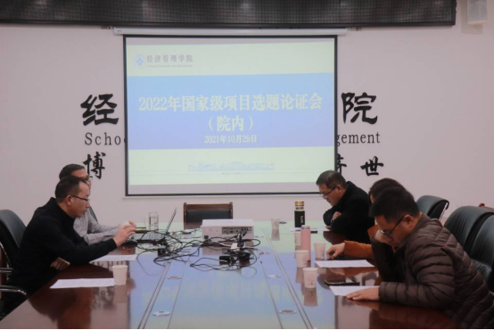 10月29日下午14:30-16:00,经济管理学院在院会议室召开2022年院级第一次国家级项目选题论证会,徐仕强副院长(主持工作)、院级评审专家翟玉胜教授、杨志远博士、田风霞博士、杨周博士参加(王友云教授因事未参加,提前已把论证意见反馈给院科研科),会议由田文勇教授主持。
