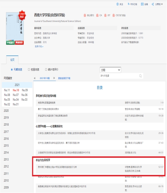 近期,beat365官网经济管理学院谭智勇副教授以第一作者在高校学报类重要期刊《西南大学学报(自然科学版)》2021年第10期发表论文《贵州铜仁市植烟土壤pH特征及其酸化驱动因子分析》。