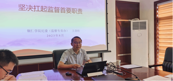 会上,纪委(监察专员办公室)纪检监察室主任王劲松和纪委(监察专员办公室)综合室副主任、党委巡察办主任黄广丽结合工作分工就监督检查、审查调查、巡视巡察、从严管理监督与鼓励担当作为相统一等作业务培训。马克思主义学院党委纪检委员、艺术学院党委纪检委员汇报2023年上半年履行监督责任情况。
