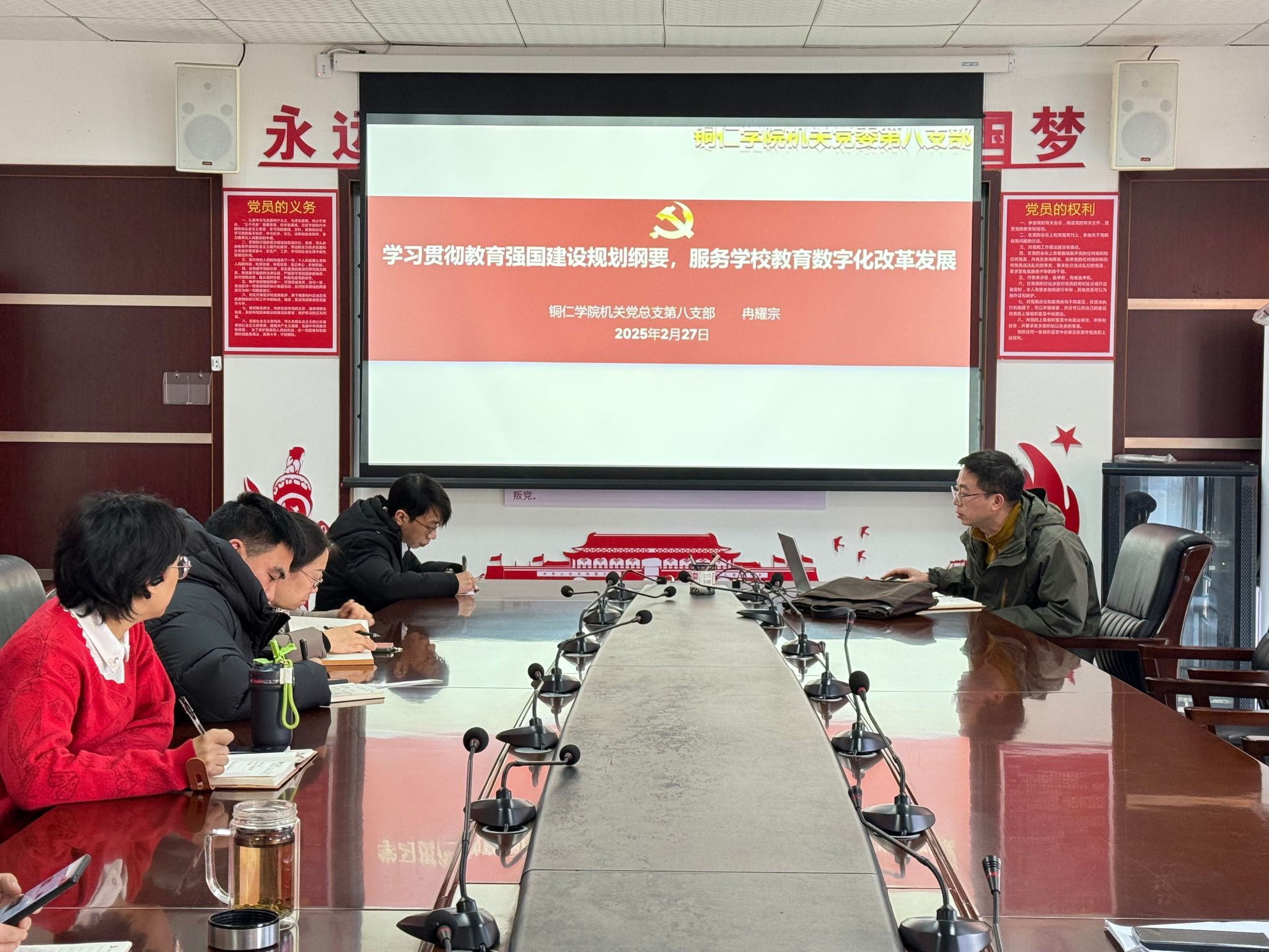 接下来开展了第一季度党课学习,学习主题为《学习贯彻教育强国建设规划纲要,服务学校教育数字化改革发展》,由冉耀宗同志领学。