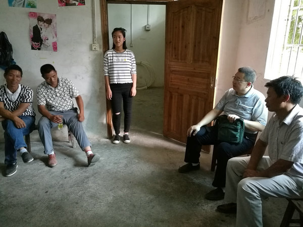 接下来舒处长代表学校慰问该村两位贫困户,在走访慰问过程中,与他们谈心交流,问寒问暖,了解他们的家庭生产生活情况和存在的具体困难,并叮嘱他们有什么困难和问题可随时找杨书记和村干部,要照顾好自己的生活,树立战胜困难的信心,并代表学校发放500元慰问金。其中一户男人无劳动力,三个小孩上学,最小的得了甲亢,所吃的药仅剩一盒,听到这,舒处长拿出了自己的500元给了小女孩,鼓励她好好治病,好好学习。