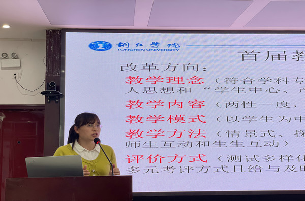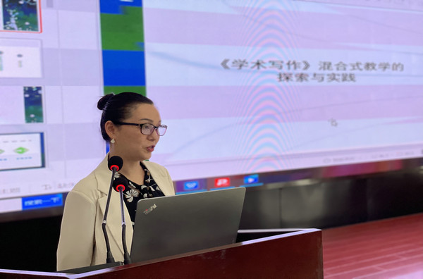 石慧敏博士以“《学术写作》混合式教学的探索与实践”为主题分享了线上线下混合式课程建设经验,从课程基本情况、存在的问题、创新举措、创新成效和教学改进等五个方面进行深度剖析。郭征帆老师分享了线下课程《秘书实用写作》课程教学经验,回顾了该课程建设历程,介绍了创新教学理念和教学方法的思路,并分享本课程挖掘课程思政元素的做法及心得。王霞教授分享的题目为“教改路漫漫,你我共求索”,她结合国家首届教学创新大赛的评选标准,阐述了课程创新改革的热点以及需要注意的问题,分析了此次省级教学创新大赛优秀选手的课程改革成果报告的特色和亮点,为参会教师如何开展课程建设改革研究提供了思路。