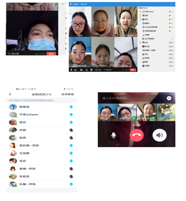 在疫情期间停课不停学的教学工作安排下,2020年3月2日下午3点,护理教研室全体教师利用QQ视频会议开启了本期第一次系部教研室空中视频工作会议。其中从韩国读硕返铜正在进行集中隔离的毛宏、孙馨、刘娴三位老师也克服困难按时参加了教研室会议。