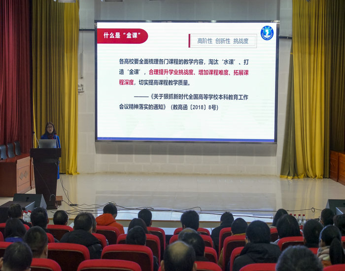 最后,教务处处长龚静解读了《beat365中国唯一官网“金课、银课”质量标准》,龚处长主要从“什么是‘金课’、怎样打造‘金课’”两方面进行了解读,她强调“金课”“水课”两个词来源于《关于狠抓新时代全国高等学校本科教育工作会议精神落实的通知》(教高函〔2018〕8号),建设‘金课’就要合理提升学业挑战度、增加课程难度、拓展课程深度。学校出台了《beat365中国唯一官网本科课堂教学质量标准》,明确了“教育性、丰富性、思辨性、研究性、前沿性、实用性、艺术性”的“七性”课堂教学标准,以引导教师们在课堂教学中,要充分挖掘思想政治教育元素、融入跨学科知识、关注学科前沿,并拓展教学内容、改革教学方式以及考核方式,促进教学改革,提升课堂教学质量。