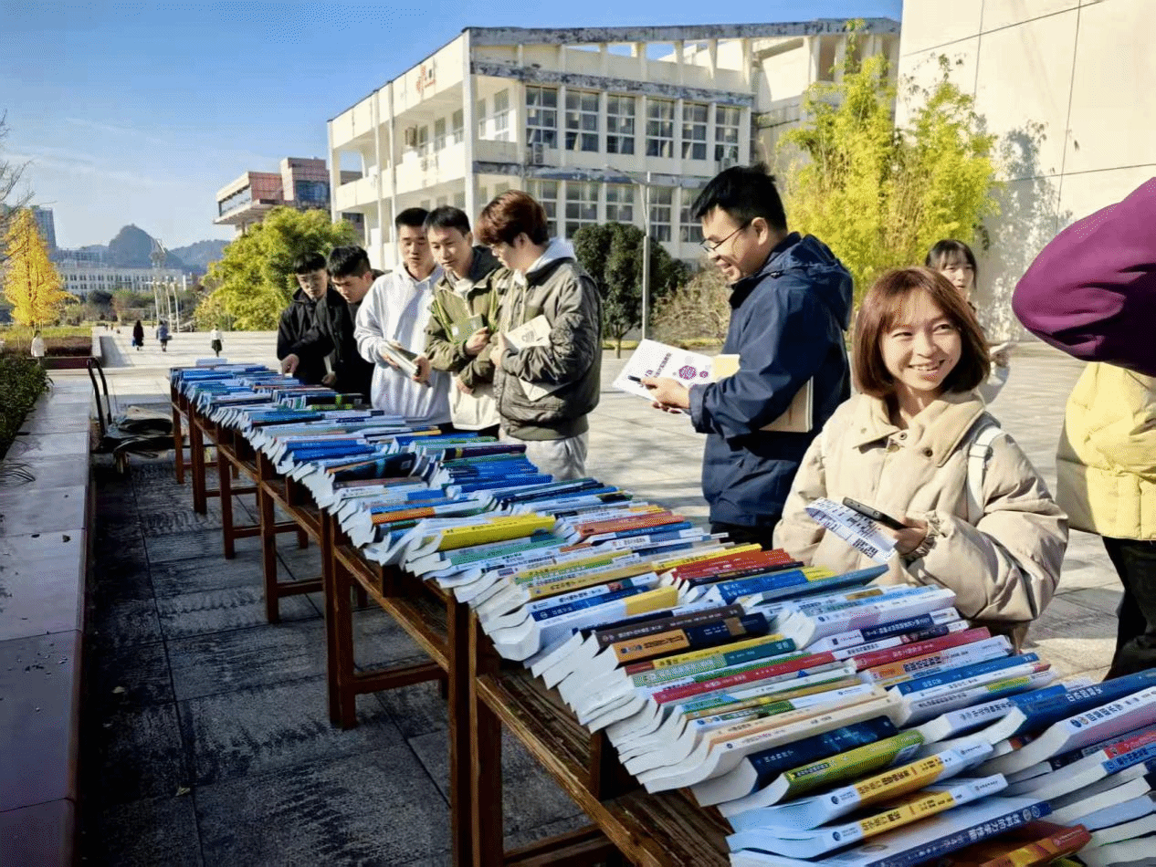 11月24日,beat365官网成功举办2025年秋季学期校园书展活动。本次教材展示及教师样书赠送活动由beat365官网联合贵州晨曦医学教育发展有限公司、贵州新知教育集团发展有限公司以及高等教育出版社、中国水利水电出版社、人民卫生出版社、化学工业出版社等70余家知名出版机构共同举办,地点在依仁楼和明理楼之间的活动区进行。