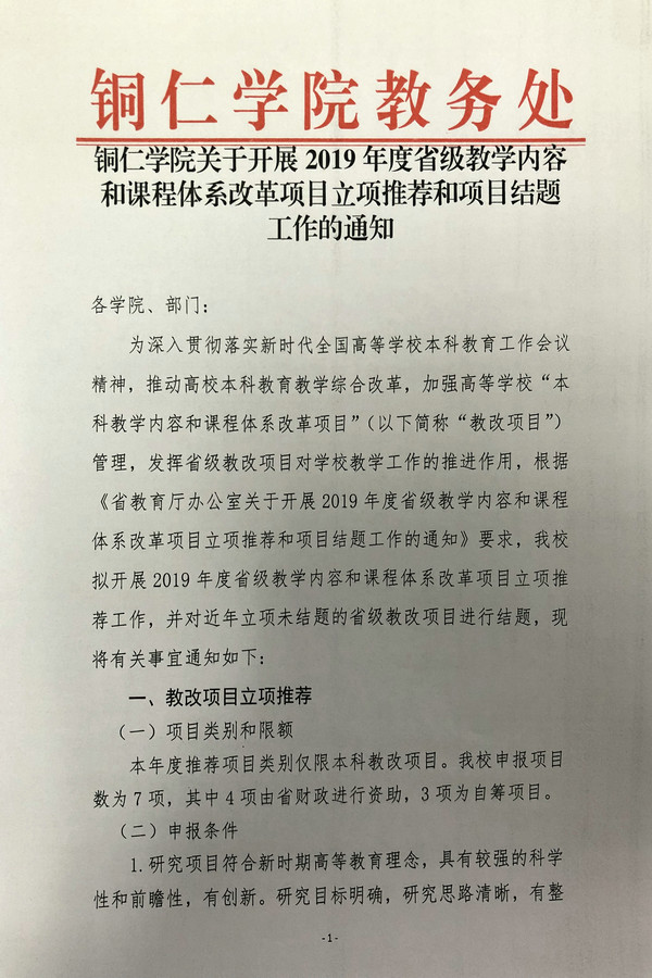 【教学项目】beat365中国唯一官网关于开展2019年度省级教学内容和课程体系改革项目立项推荐和项目结题工作的通知