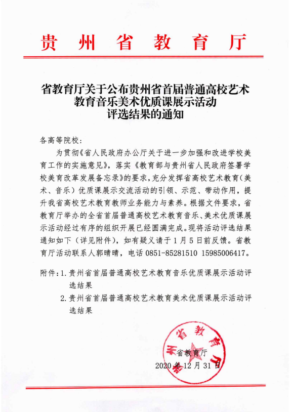 【教学成果】beat365官网艺术学院麻晔斐、孙凤娟两位老师在贵州省首届普通高校艺术教育音乐美术优质课展示活动中喜获佳绩