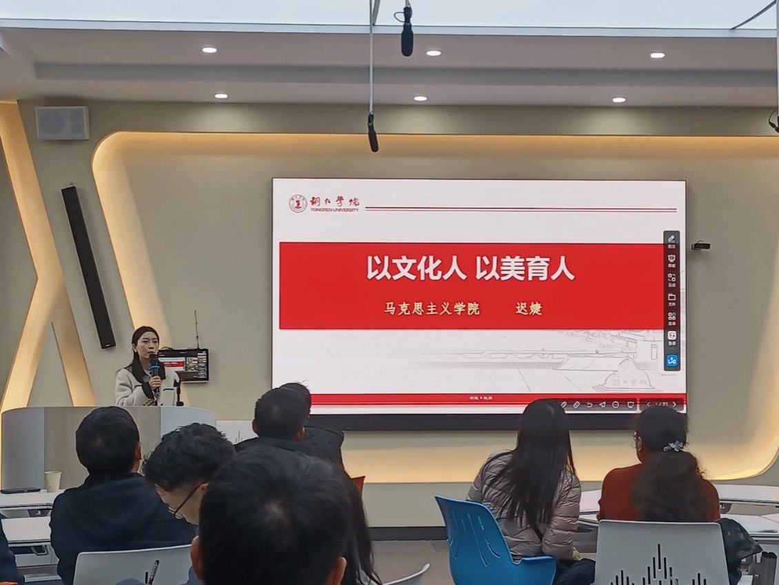 随后,马克思主义学院迟婕老师作了“以文化人、以美育人”的主题交流:做好“美的教育”要追寻美之真谛,探索美之实践,发扬美之理念,需要不断地探索前进。