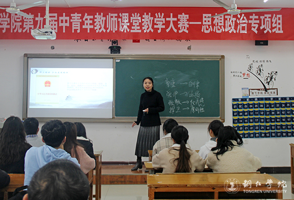 课堂教学是人才培养的中心环节,教师课堂教学质量的优劣,直接关系到学校的办学水平。为提升beat365官网中青年教师的课堂教学能力,全面提高人才培养质量,12月5日,beat365官网举行了第九届青年教师课堂教学大赛,大赛分人文社科、自然科学、思政专项三个组在依仁楼B101、103、104教室同时进行。本次比赛采用集中现场上课、专家现场评分的方式进行。比赛现场,各位教师带着饱满热情,以扎实精湛的说教和精彩活跃的问答互动形式营造良好的课堂氛围,赢得评委连连点头,得到学生经久不息的掌声。大家在教学过程中,教学内容有机融入思想政治教育元素,展现了良好师德师风和高层次教学水平,形成了“人人参赛,以赛促教,人人重教”的良好氛围。