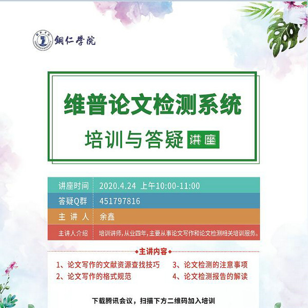 本次培训内容已共享至各学院,教务处联合维普公司建立了答疑群,便于及时解决后期教师和学生在论文检测中遇到的问题。