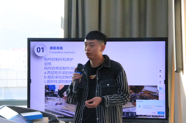 活动开始,3位优秀的赛事指导老师和1位优秀学生代表分别以不同的主题分享了赛事的优秀经验。农林工程与规划学院的曾祥老师、国际学院的胡红渊老师、大数据学院的隆蓉老师分别以“高水平学科竞赛在专业学习中的重要性”、“在外语学科竞赛中培养大学生的语言能力和国际视野”以及“基于数学建模竞赛驱动的学生能力素质培养”为主题谈了自己的心得和体会,农林工程与规划学院学生代表郭强分享了和队友一起参加全国大学生结构设计大赛的成长经历。