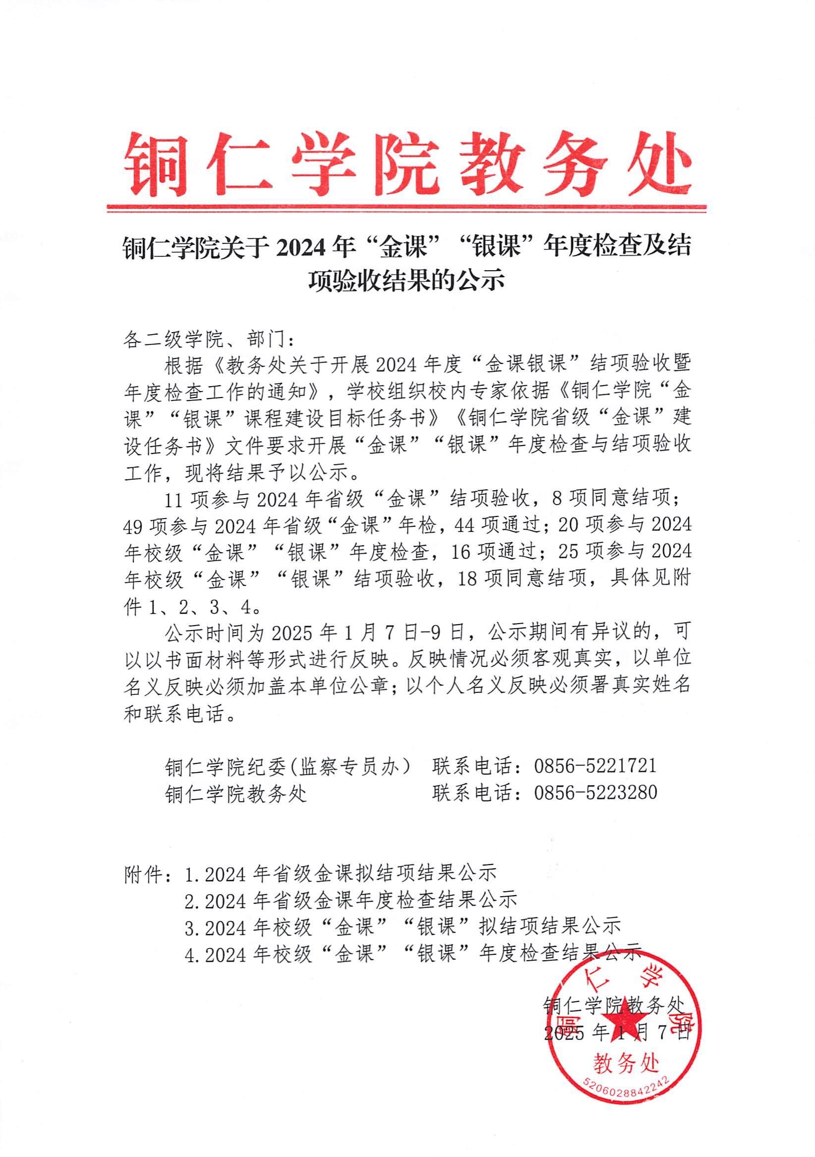 beat365中国唯一官网关于2024年“金课”“银课”年度检查及结项验收结果的公示