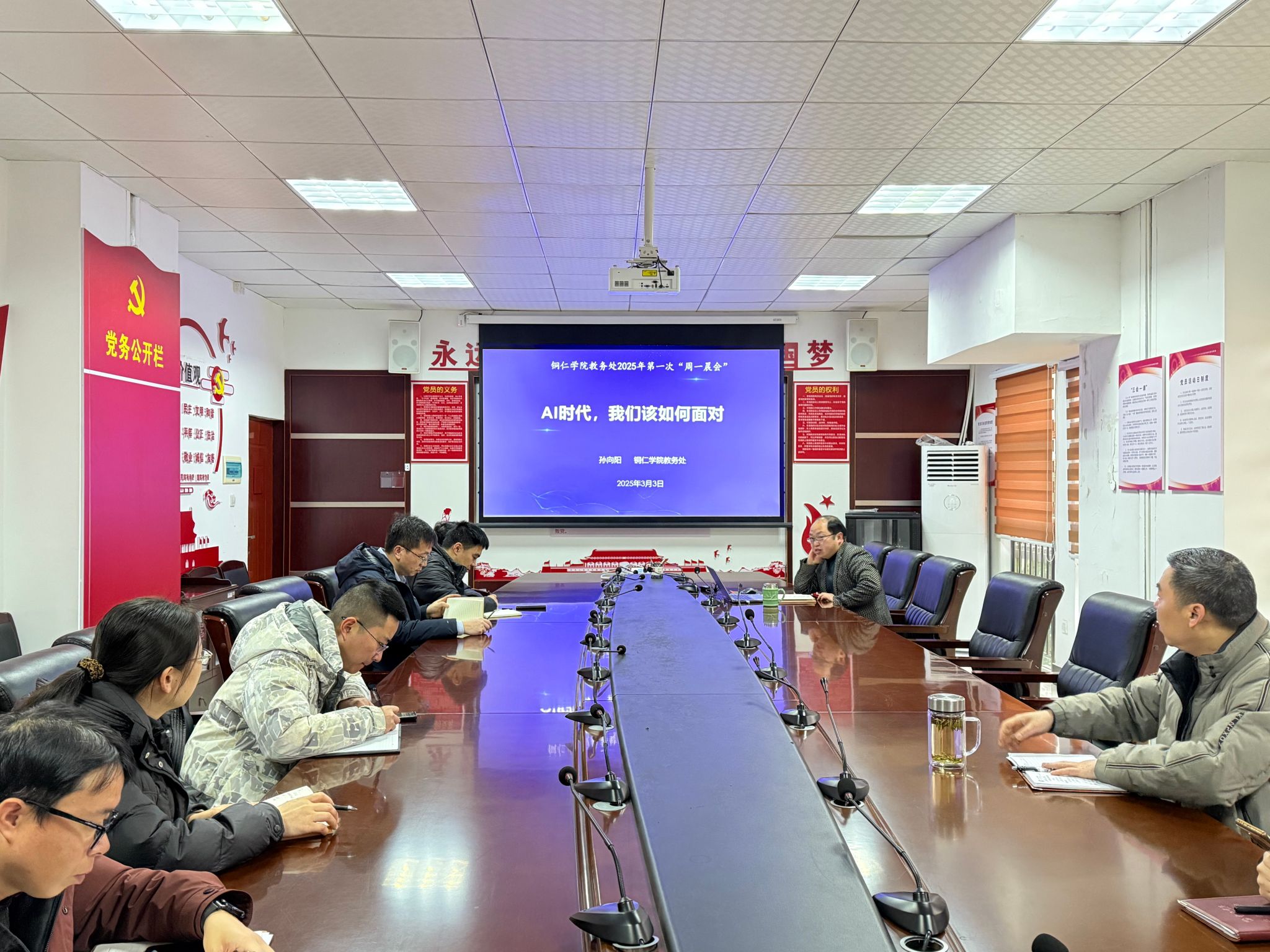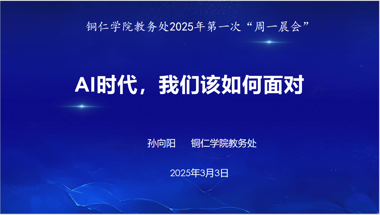 为了提升教职工的管理水平,贯彻终身学习理念,3月3日上午,教务处在行政楼8222会议室组织全体教职工开展了第一期“周一晨会”主题学习活动。此次活动由教务处处长孙向阳教授领学,学习主题为《AI时代,我们该如何面对》。