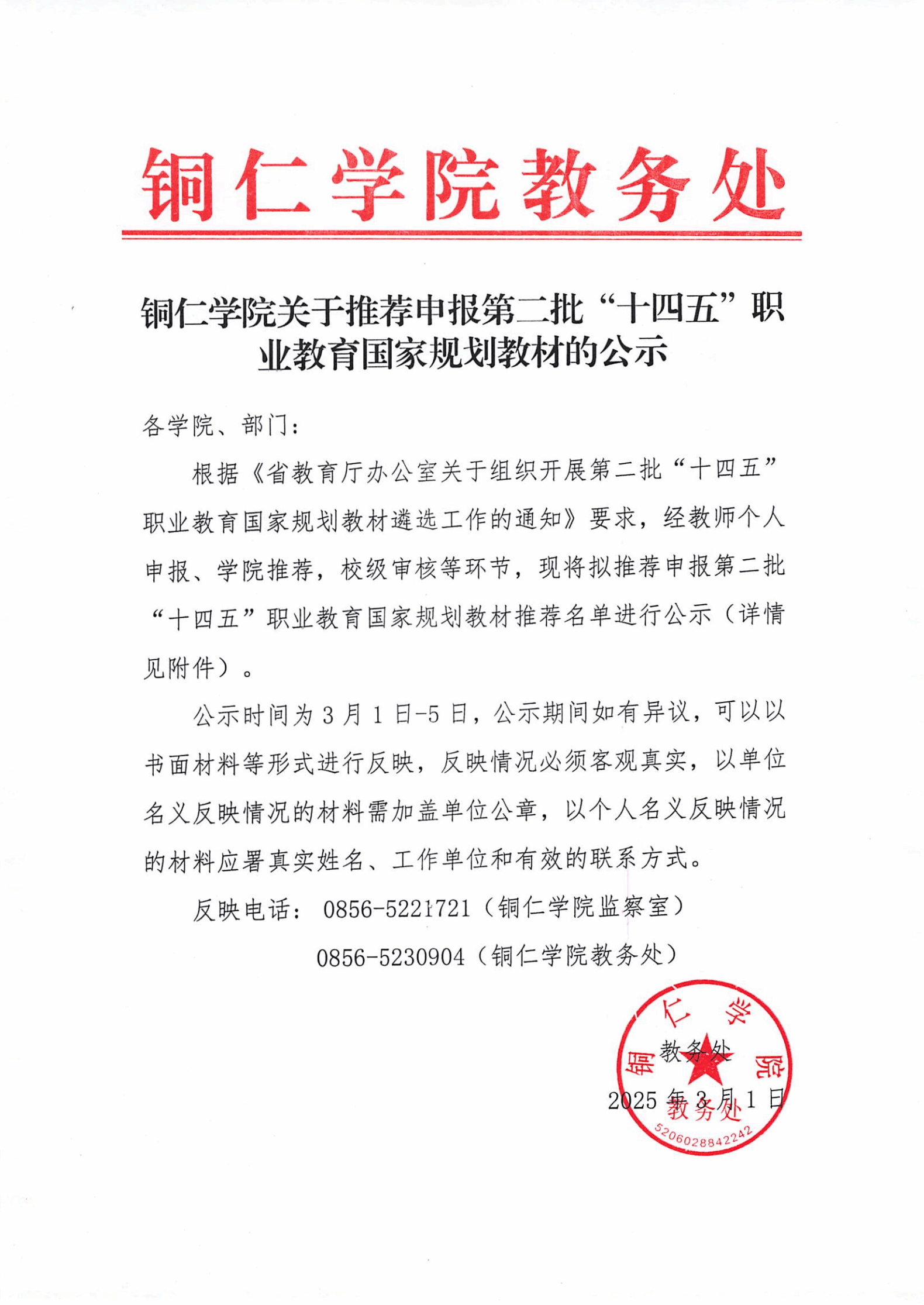 beat365中国唯一官网关于推荐申报第二批“十四五”职业教育 国家规划教材的公示