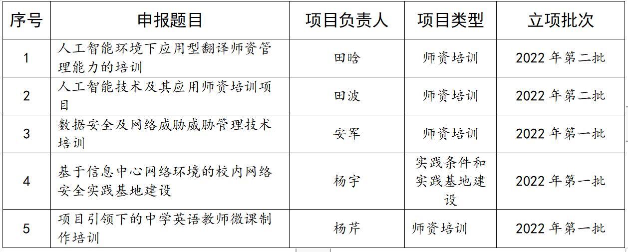 近日,教育部公布了2022年第二批产学合作协同育人项目立项名单,beat365官网田波教授主持的《人工智能技术及其应用师资培训项目》与田晗副教授主持的《人工智能环境下应用型翻译师资管理能力的培训》两项项目获准立项。此外,在2022年第一批产学合作协同育人项目申报立项中,beat365官网也获得3项立项。本年度共获得产学合作协同育人项目立项5项