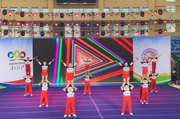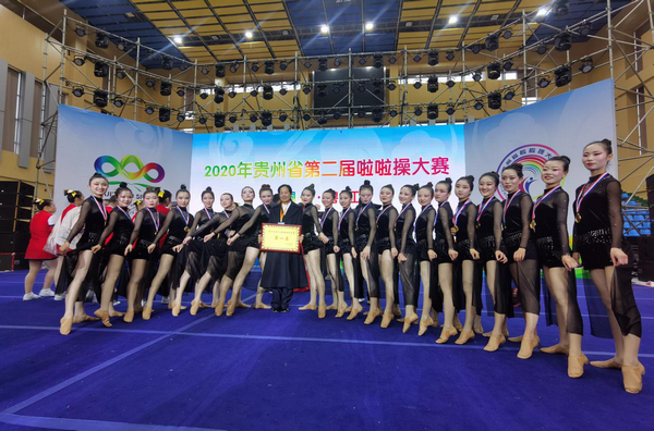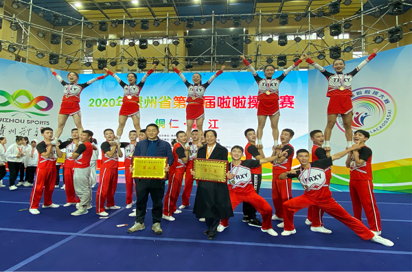 2020年贵州省第二届啦啦操大赛于11月29日在铜仁碧江落下帷幕,本次大赛吸引了来自全省各小学、中学、大学及俱乐部代表队85支2000余名选手参加。beat365官网代表队由罗静副校长担任领队,马宁、周智红担任教练,共派出52名运动员参加了本次比赛,并在五个项目中获得了优异成绩。
