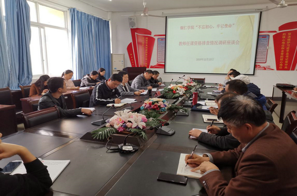 11月13日下午,为认真贯彻落实习近平新时代中国特色社会主义思想及党的十九大报告、全国教育大会、全国本科教学工作会会议精神,聚焦“不忘初心、牢记使命”主题教育,“聚焦课堂、建设金课、打击水课、切实提高课堂教学质量”总要求,落实立德树人根本任务,全面提升课堂教学质量,教师任课资格排查情况调研座谈会在教育学院会议室召开,教务处与教学质量监控中心负责人以及各二级学院分管教学的副院长、教务科科长参加了此次调研会,会议由副校长罗红芳教授主持。