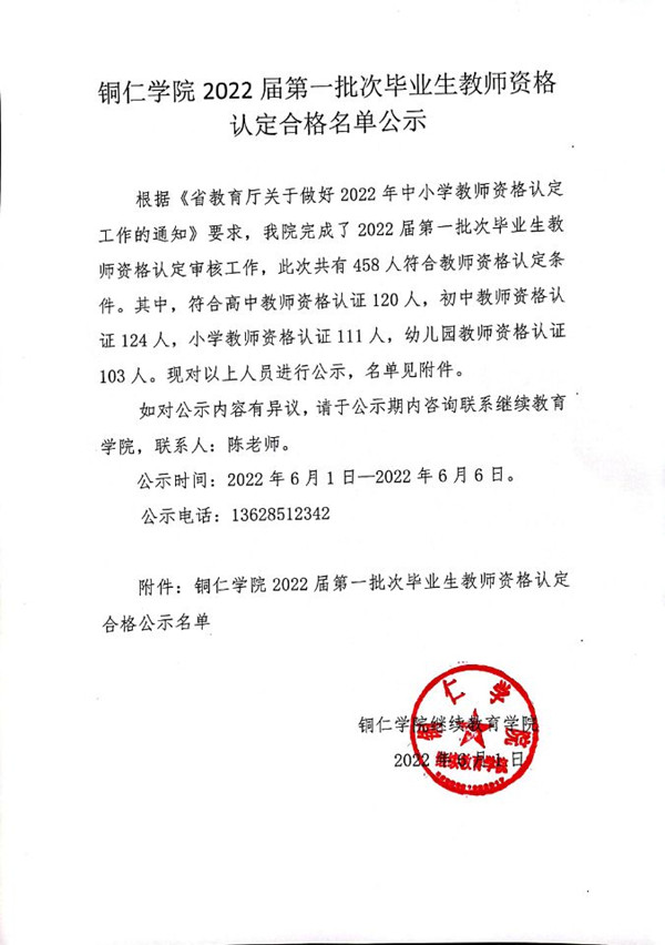beat365中国唯一官网2022届第一批次毕业生教师资格认定合格名单公示