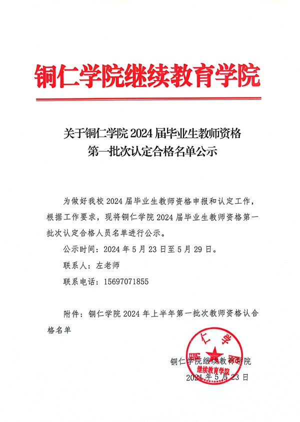 关于beat365中国唯一官网2024届毕业生教师资格第一批次认定合格名单公示