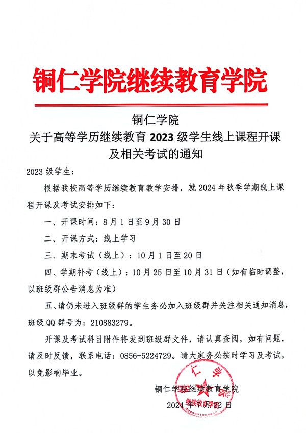 beat365中国唯一官网关于2024级高等学历继续教育2024年春季学期线上课程期末考试的通知
