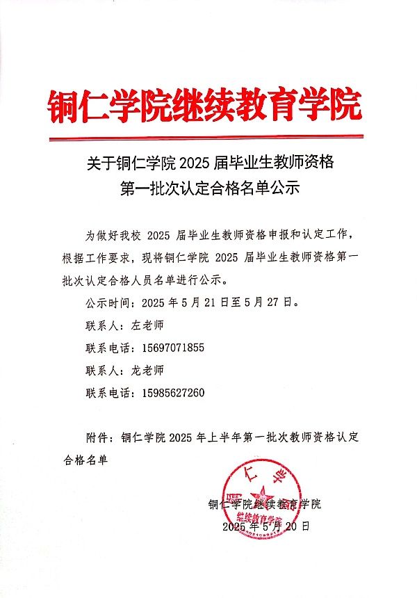 关于beat365中国唯一官网2025届毕业生教师资格第一批次认定合格名单公示