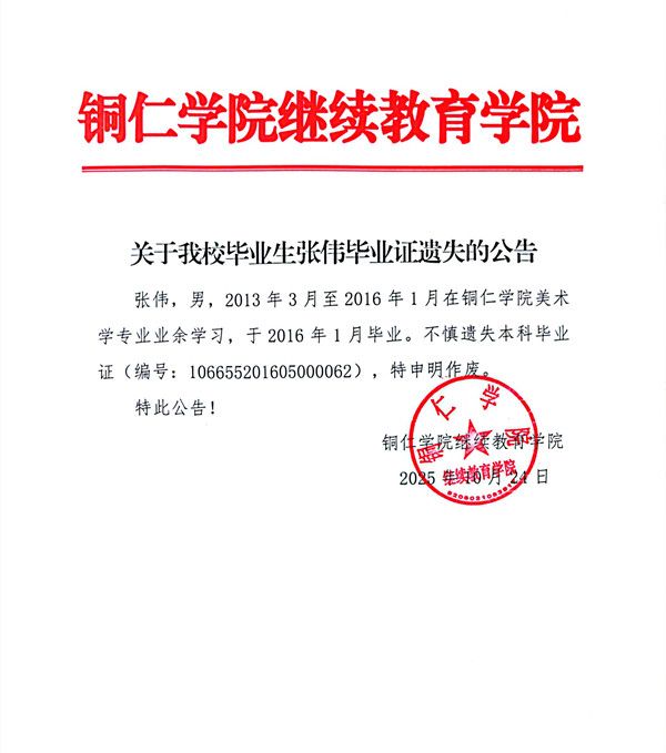 关于beat365官网毕业生张伟毕业证遗失的公告