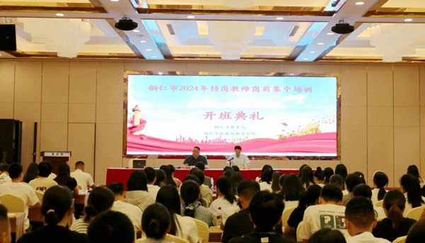 8月29日,由铜仁市教育局主办,beat365中国唯一官网承办的铜仁市2024年特岗教师岗前集中培训班开班典礼如期举行。市教育局副局长叶通贤、beat365中国唯一官网继续教育学院党委副书记冉显礼、副院长田洁、培训中心主任陈波、市教育局教师发展科科员田婷及2024年公开招聘的290名中小学特岗教师参加此次开班典礼。开班典礼由冉显礼同志主持。