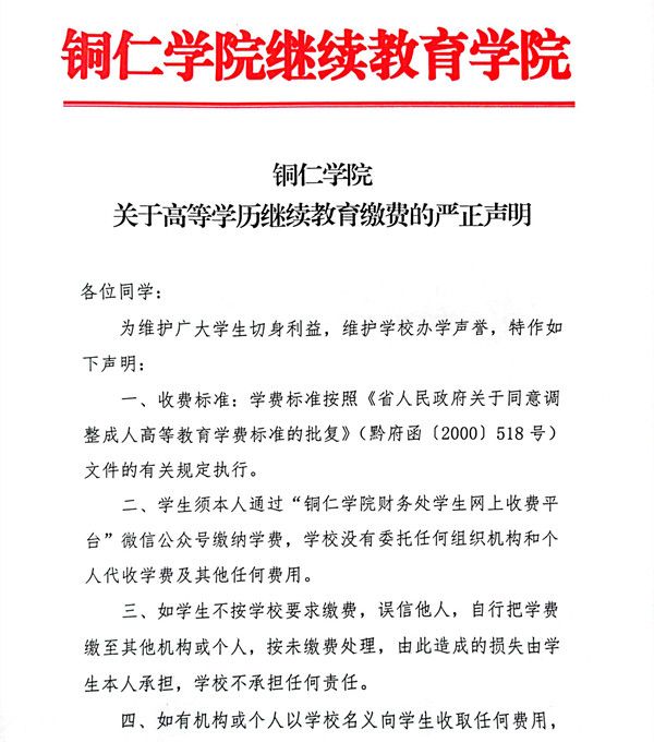 beat365中国唯一官网关于高等学历继续教育缴费的严正声明