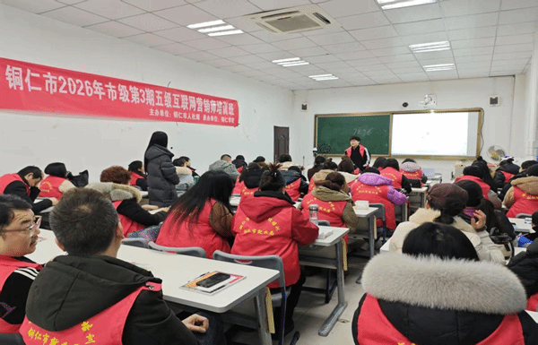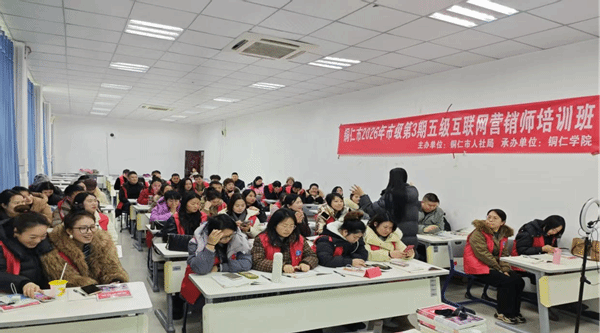为深入落实“技能贵州”行动要求,助力铜仁市数字经济高质量发展,精准对接新业态技能人才需求,1月20日,由铜仁市人力资源和社会保障局主办、beat365中国唯一官网继续教育学院承办的2026年第一期互联网营销师(五级)职业技能培训班正式开班。60名来自全市各地的待业青年、灵活就业者、企业职工、新业态转型人员等学员齐聚一堂,共同开启数字营销技能提升之旅。