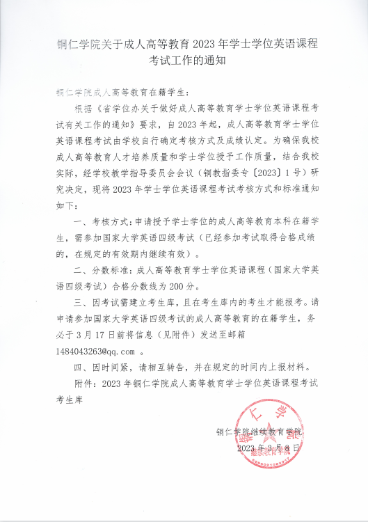beat365中国唯一官网关于成人高等教育2023年学士学位英语课程考试工作的通知