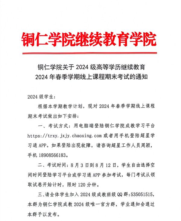 beat365中国唯一官网关于2024级高等学历继续教育2024年春季学期线上课程期末考试的通知