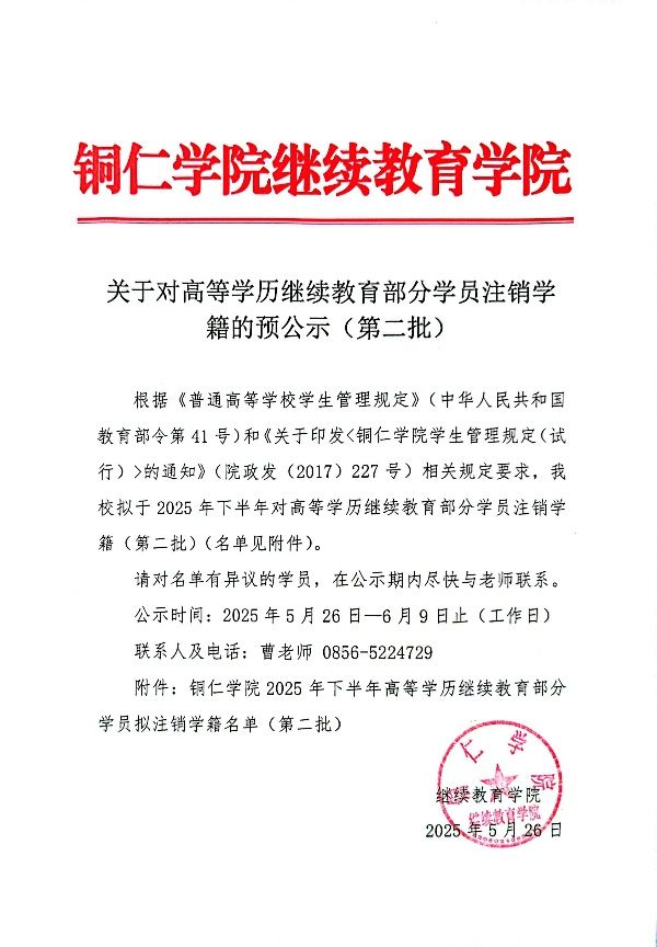 关于对高等学历继续教育部分学员注销学籍的预公示(第二批)