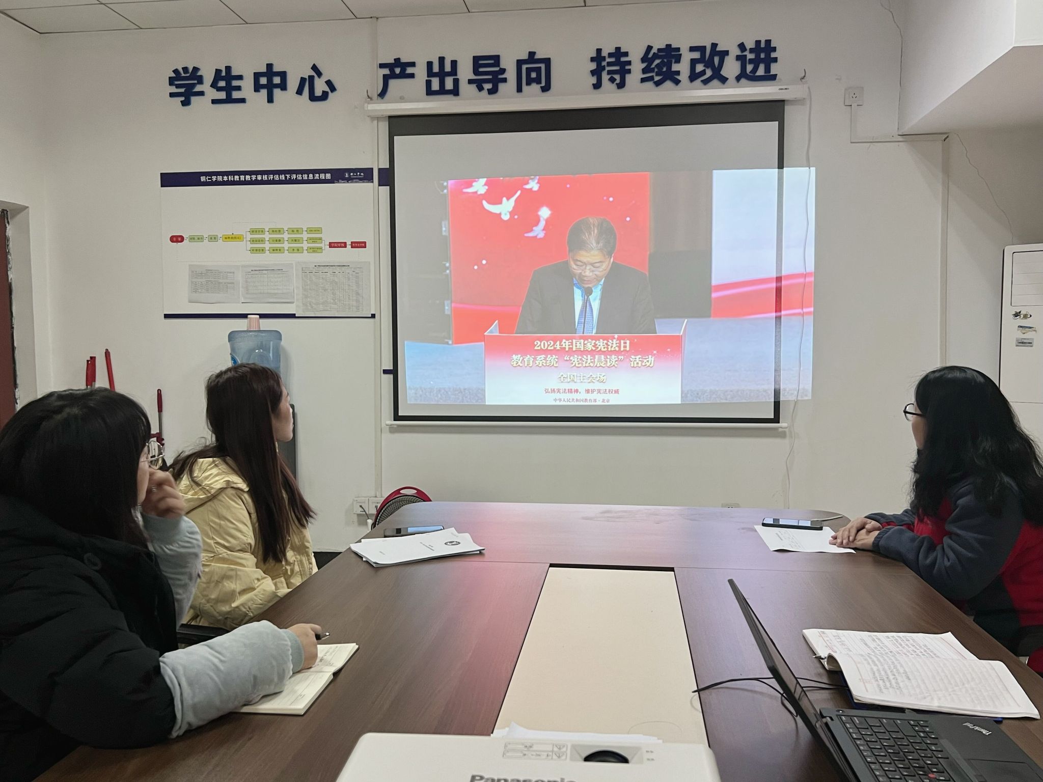 12月4日,我中心在行政楼8515会议室通过教育部全国青少年普法网参与“宪法晨读”活动。大家集体跟读了宪法条文,合唱了《宪法伴我们成长》等。通过集中学习,大家进一步深化了对宪法知识的认识,增强了守法意识。