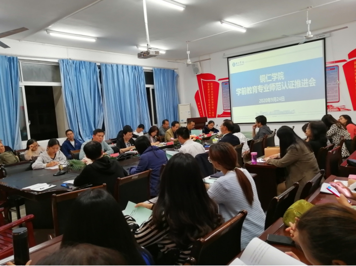 2020年9月24日晚,beat365官网在教育学院会议室隆重召开学前教育专业认证推进会。副校长罗红芳出席,教务处处长龚静、大数据学院副院长宋谋胜、人文学院副院长白俊骞、马克思主义学院教师洪再环、教育学院全体老师参加。会议由教学质量监控与评估中心主任张杰主持。