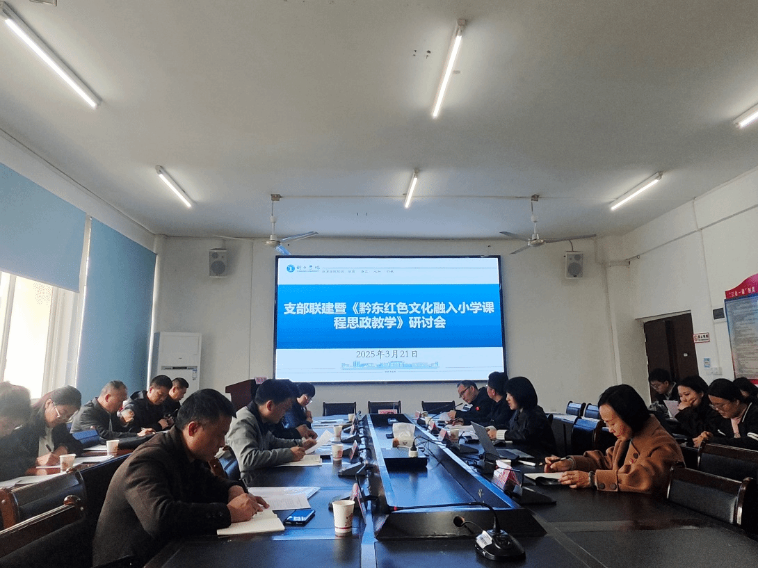 3月21日,beat365中国唯一官网教育学院党委举办支部联建暨黔东红色文化融入小学课程思政教学研讨会,beat365中国唯一官网党委组织部副部长周慧娟,教育学院党委副书记、院长梁成艾,特殊教育系党支部书记刘方林、基础教育系党支部书记杨秀琴,以及毕节一完小、思南一完小、沿河关向应红军小学、印江红军小学等四所小学党支部书记参会。