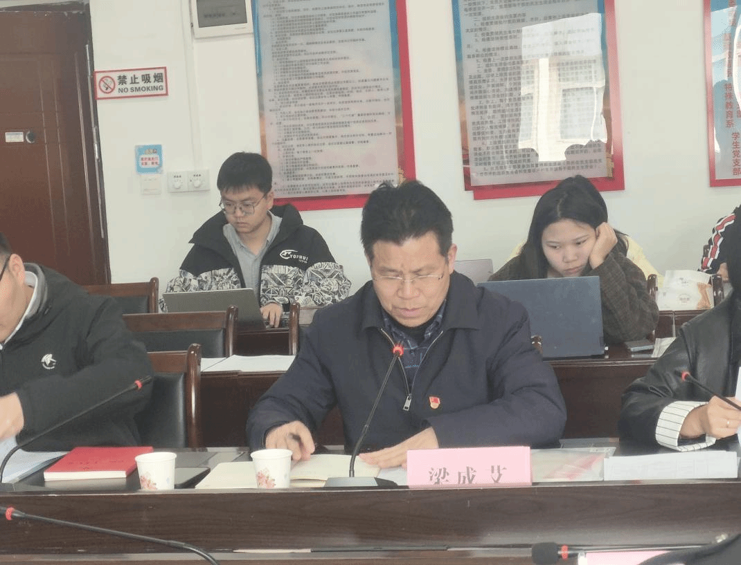 (教育学院党委副书记、院长梁成艾主持会议)
