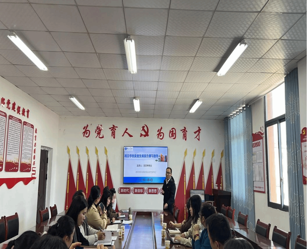 贵州省民族地区基础教育质量提升行动计划beat365中国唯一官网碧江区项目组组长、教育学院特殊教育系党支部党员陆艳博士则针对“一书四报告”的前期工作部署,着重强调了日常资料归档整理与数据积累的重要性,明确了后续工作的方向要求与时间节点。最后,通过现场互动交流,与会教师围绕报告撰写中的困惑与实践心得展开热烈讨论,实现了“答疑解惑”与“经验共享”的双重效果,全面提升了学校教育质量发展报告的撰写水平。
