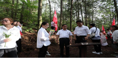 上午11点,汽车行进至我们行程的等二站,石阡县甘溪遭遇战遗址。近距离参观感受红军革命英烈英勇事迹,全体师生进行献花默哀,党员同志们重温入党誓词。中午2点30分,我们到达石阡县城红二、红六军团指挥部旧址,在现场解说人员详尽的介绍下,感受当年红二、红六军团指挥部艰苦的工作环境和艰难的革命岁月。下午4点50分,到达印江县苏家坡战斗遗址,在老师的带领下,全体师生爬上当年黔东独立师与敌军殊死搏斗的苏家坡尖山战斗遗址,参观当年红军挖的战壕。教育学院党委书记崔德虎教授介绍“当年这场战斗打得十分惨烈,黔东独立师为掩护红二、红六军团主力转移,大多英勇牺牲。”