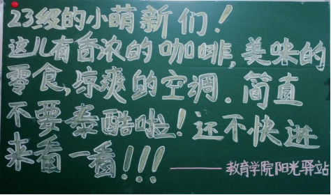 此次活动主要分为两个部分:首先,活动前一天,工作人员们齐心协力,共同营造出一个温馨舒适的场所,供新生、新生家长及志愿者们休息;并且在线上及线下进行了广泛地宣传,以吸引同学们的到来;其次,活动当天,工作人员们以饱满的热情迎接了来阳光驿站休息的同学及家长,并向新生们介绍了教育学院的专业特色以及阳光驿站在我院的作用。