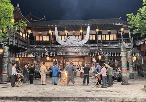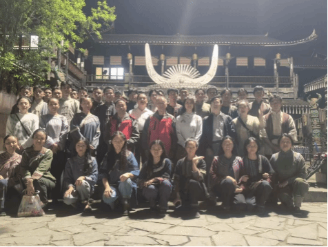 教育学院党委书记崔德虎教授于晚上赶往苗王城拍摄现场,看望参加电影拍摄的同学们,为同学们鼓舞士气。同时,趁着夜色,与同学们聚集在一起,留影纪念这辛劳且有意义的一天。