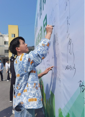 启动仪式上,我院学生代表张鹭婷上台领取了植树捐赠证书。随后,崔德虎书记以及参加此次活动的学生代表们一同在活动墙上签名留念。