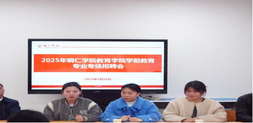 为扎实推进毕业生就业工作,为毕业生提供高效、精准的就业服务,2025年3月18日下午,教育学院联合铜仁市第四幼儿园、第十七幼儿园举办2025届毕业生校园招聘宣讲会。教育学院党委书记崔德虎、学生科科长左文、铜仁市第四幼儿园、第十七幼儿园园长参加了此次招聘会,教育学院学前教育专业2025届毕业生参加了此次招聘会。