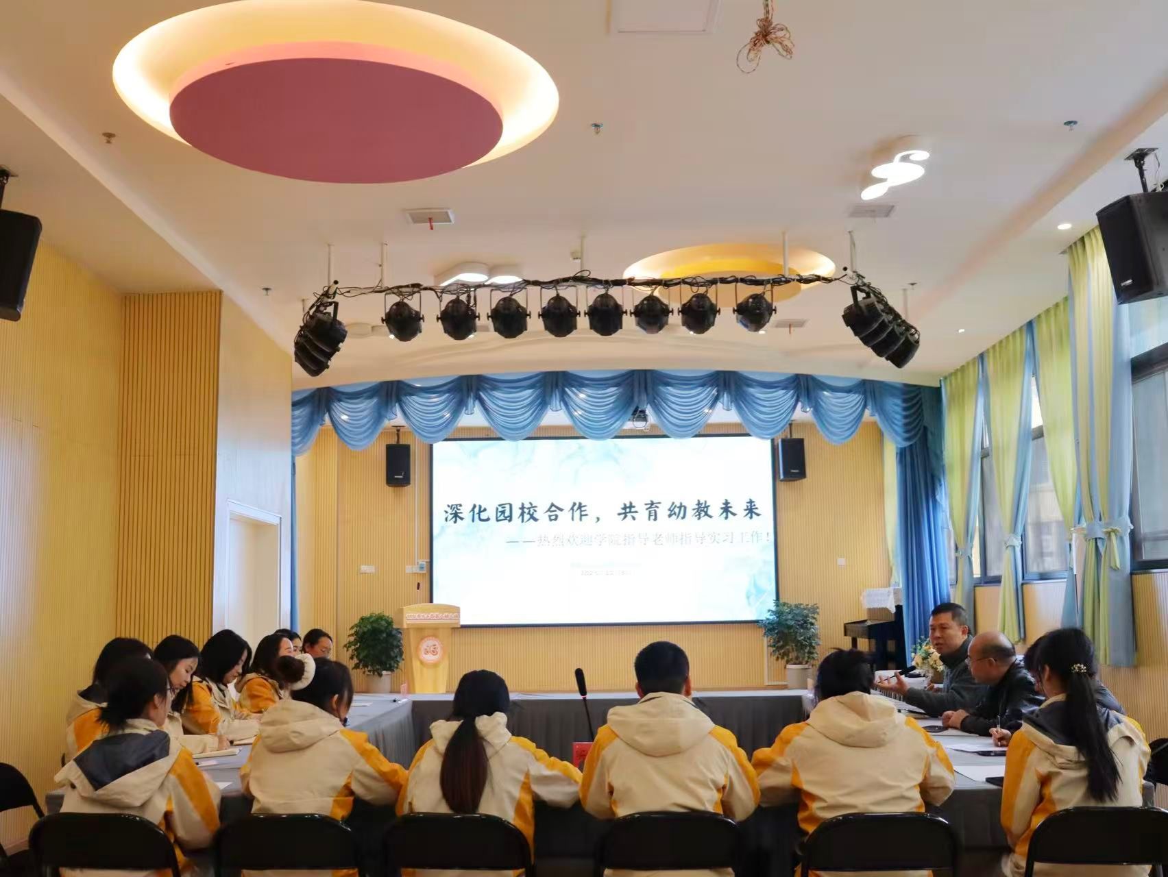 随后大家就幼教行业发展动态、岗位技能要求、行业对毕业生能力期待以及实习生专业发展述求等方面展开交流,这些宝贵的反馈信息将对学前教育专业建设、课程设置、实践教学方法革新及学生职业发展规划提供了新的思路。
