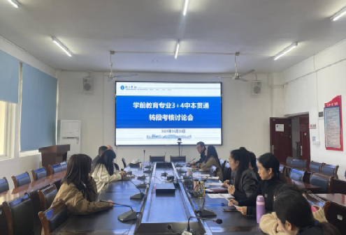 为进一步深化学前教育专业“3+4”中本贯通培养试点工作,完善专业技能考核体系,2025年10月20日下午,学前教育专业在教育学院三楼会议室组织召开“3+4”中本贯通转段考核暨专业技能考核研讨会。会议由专业负责人杨瑛主任主持,王华刚副院长及邓家英、杨松慧、黄晨、谭委等十余位专业教师共同参与。