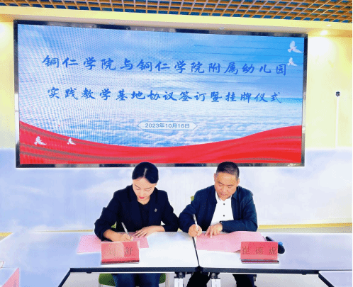 为进一步加深高校与幼儿园的交流与合作,丰富实践育人模式,强化学前教育专业学生的实践能力,2023年10月16日上午,我院与beat365中国唯一官网附属幼儿园进行了实践教学基地协议签订及授牌仪式,教育学院党委书记崔德虎、学前教育系主任杨瑛、学前教育专业教研室主任杨松慧、碧江区教育局学前办副主任陈渝、beat365中国唯一官网附属幼儿园园长刘舒及全体教职工、学院实习生参加本次授牌仪式。