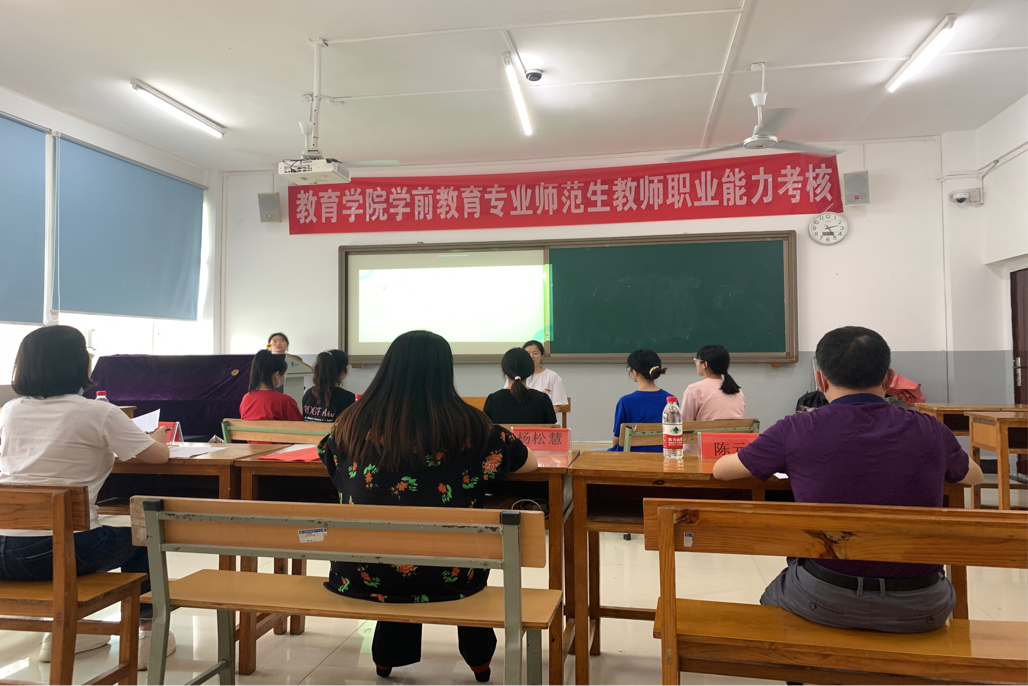 为提升学前教育专业学生职业能力,提高专业人才培养质量,推进新时代卓越教师培养,对标师范生教师职业能力国家标准,落实《beat365中国唯一官网师范生教师职业能力考核方案》,近日,我院学前教育专业开展了教学综合能力考核工作。每个考核组安排15位学生,考核环节包括说课和模拟教学,内容包含健康、语言、社会、科学和艺术五大领域,评委由学前教育专业全体教师及8位幼儿园一线教师组成。