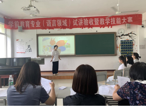 为提高学生教学技能,检验学生试讲准备情况,6月14日下午,学前教育专业在明理楼三楼、四楼开展了试讲验收暨教学技能大赛活动。此次试讲验收内容包括五大领域八大内容,分别是健康领域的体育游戏及健康基础、语言领域、社会领域、科学领域的科学探究及数学认知和艺术领域的音乐及美术活动。本次试讲验收及比赛活动的评委由学前教育系全体老师及幼专老师共同组成,2019级全体学生及幼专联合培养的学生共同参与此次验收活动。